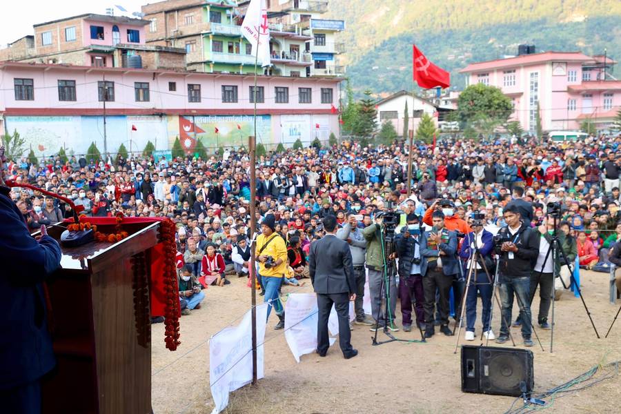 बैठकलाई सम्बोधन गर्दै अध्यक्ष प्रचण्डले भन्नुभयो, "झण्डै ६ वर्षपछि हाम्रो आधार क्षेत्र थबाङ आउन पाउँदा मलाई हर्ष र गौरवको अनुभूति हुन्छ। म ४० वर्षअघि पहिलोपटक थबाङ आएको थिएँ। जनयुद्धको तयारी, उठान र सञ्चालन यहीं आधार बनाएर गरिएको थियो।"